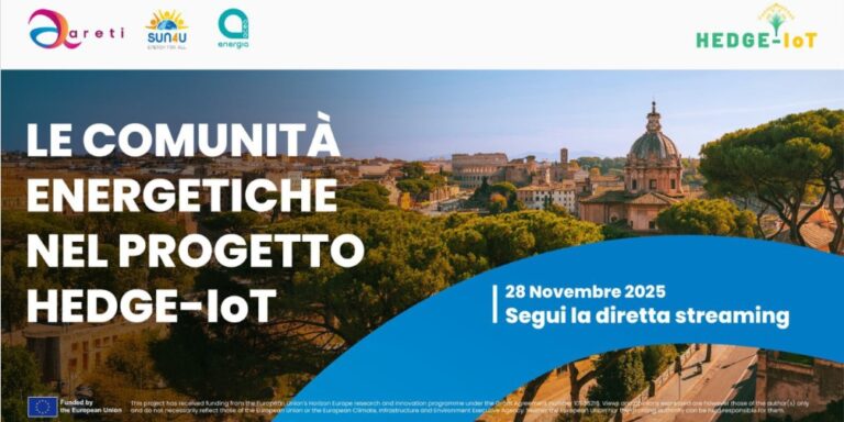 Il 28 novembre si è svolto l’evento “Le Comunità Energetiche nel progetto HEDGE-IoT”, un’iniziativa cofinanziata dall’Unione Europea nell’ambito del programma Horizon Europe, dedicata alla digitalizzazione dell’ecosistema energetico e all’integrazione delle Comunità Energetiche nelle reti di distribuzione. Vedi video SUN4U annuncia una nuova fase di sviluppo per le Comunità Energetiche Rinnovabili (CER) a Roma, mettendo al centro la…
